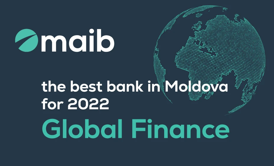 For the 6 year in a row maib is honored to be awarded Best Bank in Moldova by Global Finance Magazine. In its 29th annual Best Bank Awards, together with banks from 21 other countries of Central and Eastern Europe, maib was recognized by the magazine for its progress and achievements as the best bank in the country.